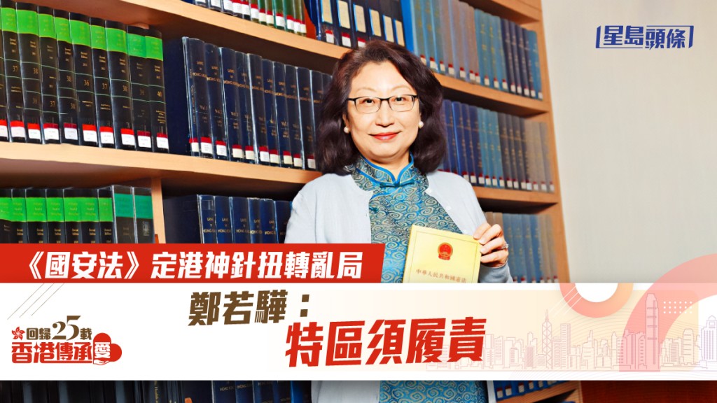 香港回歸二十五載,《基本法》保障五十年不變的「一國兩制、港人治港、高度自治」管治方針步入中段,回顧過往重大事件,必然數到二○二○年實施的《香港國安法》。律政司司長鄭若驊接受《星島》專訪時,形容《國安法》的成效「國安家好,興邦定國」,特區經歷由亂轉治,漸入由治及興的階段。她強調,就算本港實施《國安法》,又有《刑事罪行條例》煽動罪的現行法例,再加上將來重推的《基本法》第二十三條,也不代表維護國家安全的工作就此完成,重申國家安全需要「不斷保護」,特區需要履行持續完善維護國家安全法律制度體系的責任。法庭記者 凌子淇